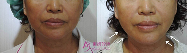 ▲案例原本臉部老化下垂,施打音波拉提後,臉形拉提緊實,並且法令紋、嘴角下垂皆有所改善(療程效果因人而異,此為本院真實案例,實際情形需由專業醫師評估)
