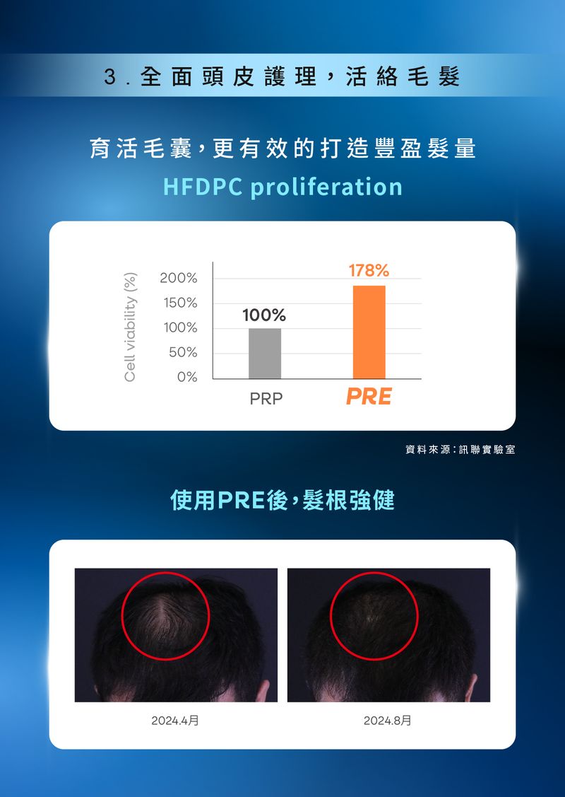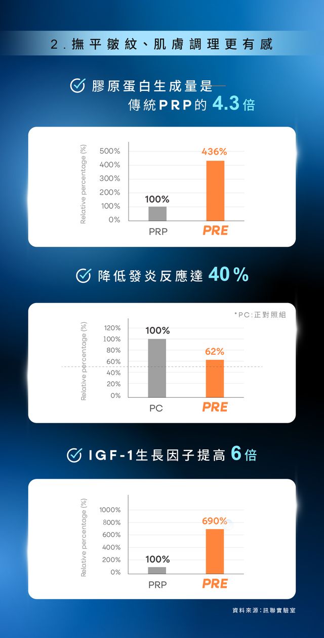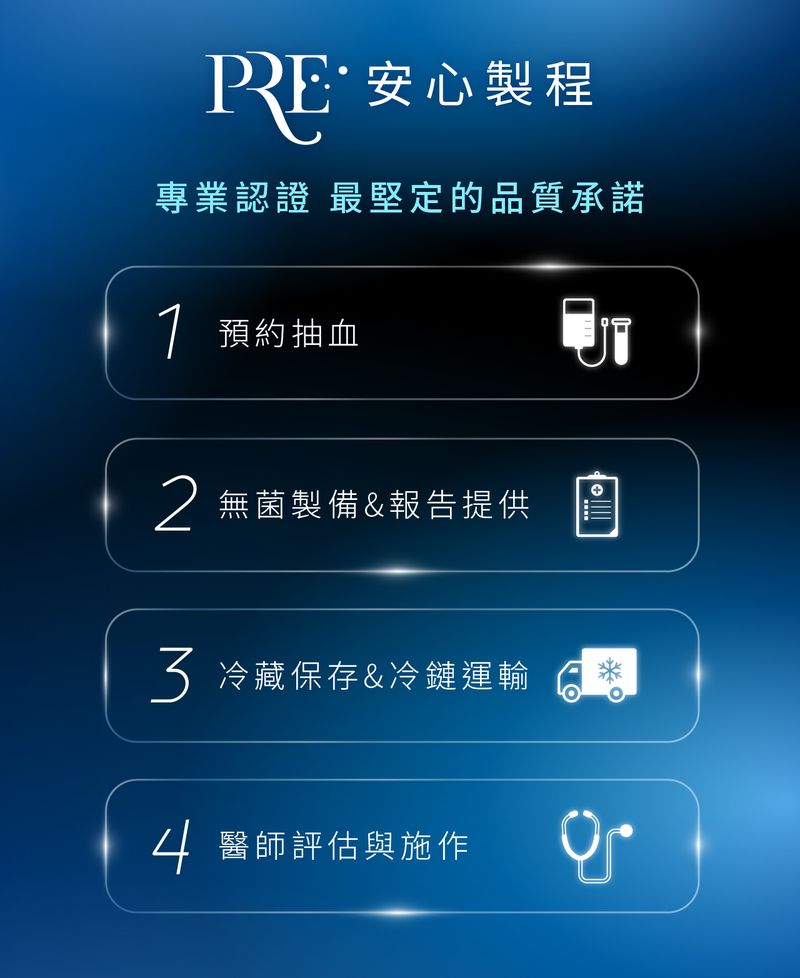 台灣再生醫學大廠訊聯帶領PRP升級至嶄新時代,推出PRE,為傳統PRP升級版,其自體來源,產品無任何添加物,嚴格把關安全性。